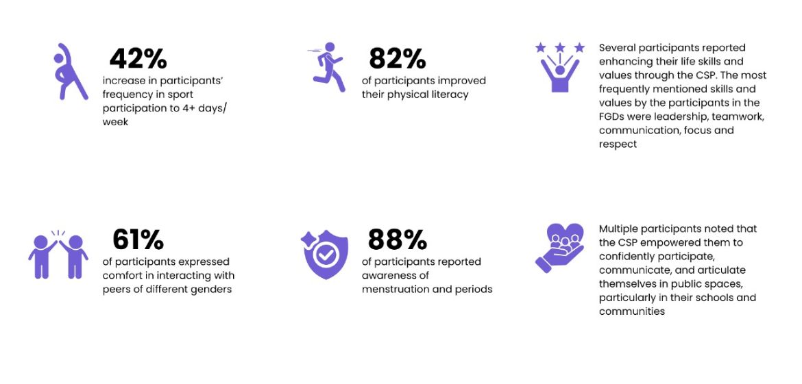 Through these programs, young people, especially girls, experience improved health and well-being and develop essential life skills and values. Additionally, PSD’s initiatives build young people’s capacities on gender, adolescent health and hygiene and child rights.